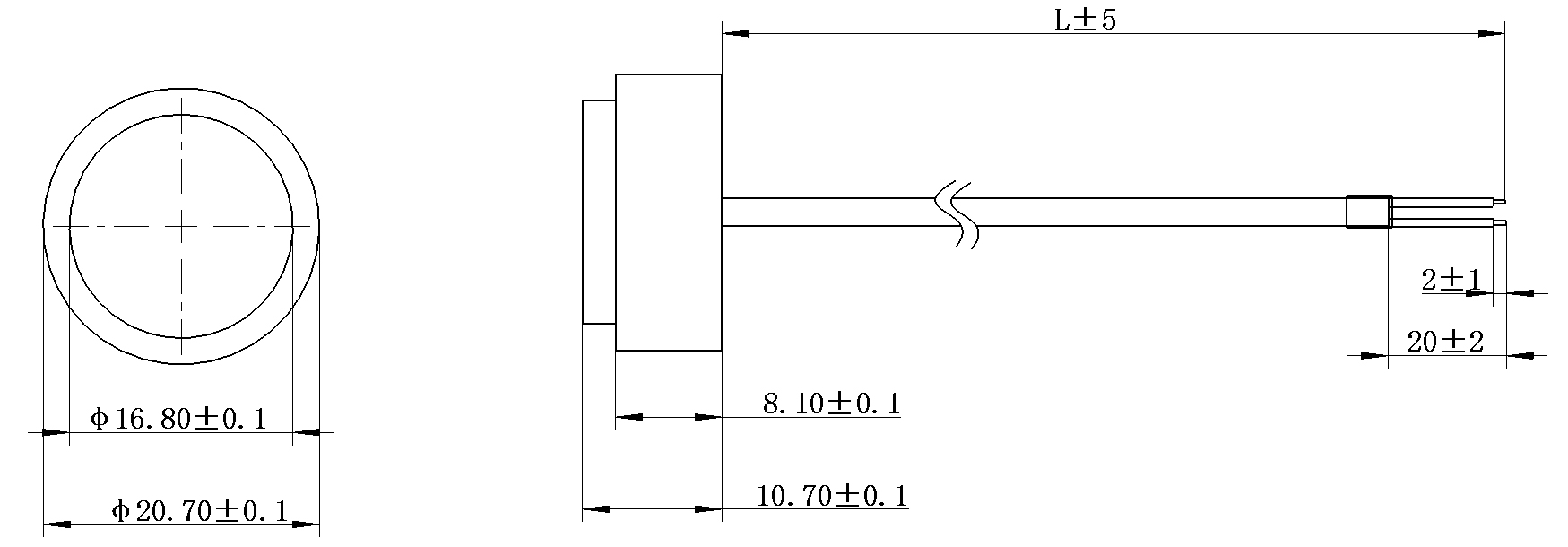 外殼材質(zhì) | 高分子材料 | 發(fā)射面尺寸 | φ17mm | 安裝面尺寸 | φ21mm |