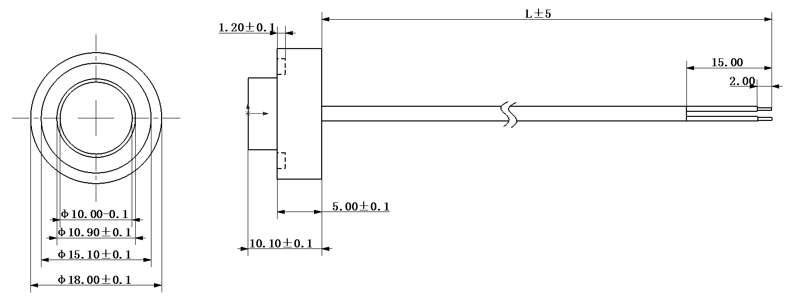 外殼材質(zhì) | 高分子材料 | 發(fā)射面尺寸 | φ10mm | 安裝面尺寸 | φ18x10x11mm |